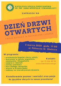Dzień Drzwi Otwartych, który w tym roku odbył się 3 marca, był świetną okazją do zaprezentowania bogatej oferty naszej szkoły. Przybyli rodzice wzięli udział w spotkaniu z dyrekcją, a następnie mieli okazję zwiedzić sale lekcyjne. Dla przyszłych uczniów przygotowaliśmy warsztaty w języku angielskim, niemieckim i hiszpańskim, zajęcia z robotyki, doświadczenia fizyczne i chemiczne, turniej szachowy …